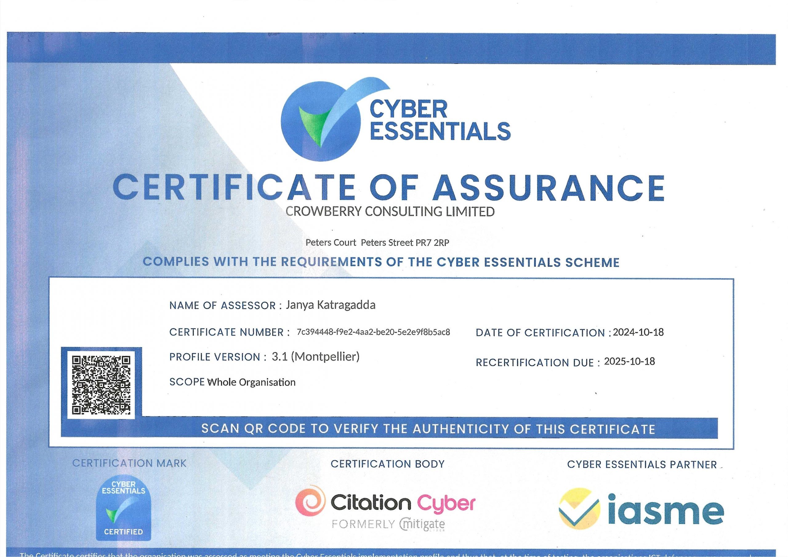 ISO 9001 Certificate Crowberry Consulting 2024